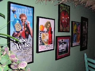 Cabo Wabo Lake Tahoe is nowhere near as large as the original Cabo Wabo. Basically, Tahoe Wabo consists of a small restaurant area to the left, a small bar to the right, a series of patio tables and palapas in front of the restaurant and, of course, the requisite gift shop. At the gift shop's main entrance stood a five foot, papier mache bottle of Cabo Wabo tequila. That bottle would mysteriously disappear later that afternoon, only to reappear onstage during Sammy's three scheduled shows that weekend.